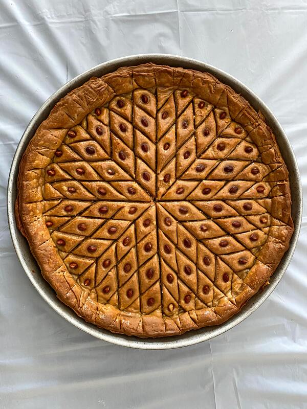 A baklava sajttorta vastag sajttorta sütemény és dióból, mézből és citromból készült feltét. A baklava sajttorták az ízek és textúrák csodálatos keveréke. A dió ropogása és a tészta tölteléke tökéletesen ellensúlyozza a gazdag, krémes sajttortát.