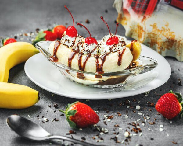 Nincs is jobb egy hagyományos banán splitnél, ha fagylaltos desszertek készítésére gondolsz ! A banánsplit egy gyermekkori desszert, és biztosak vagyunk benne, hogy sok felnőtt is szereti. A banánsplit hagyományos változata háromféle fagylaltból, egy banánból és tejszínhabból készül. Adj hozzá különféle feltéteket, díszítsd dióval és tálald! Ha természetesen a hagyományos változatot készíted.