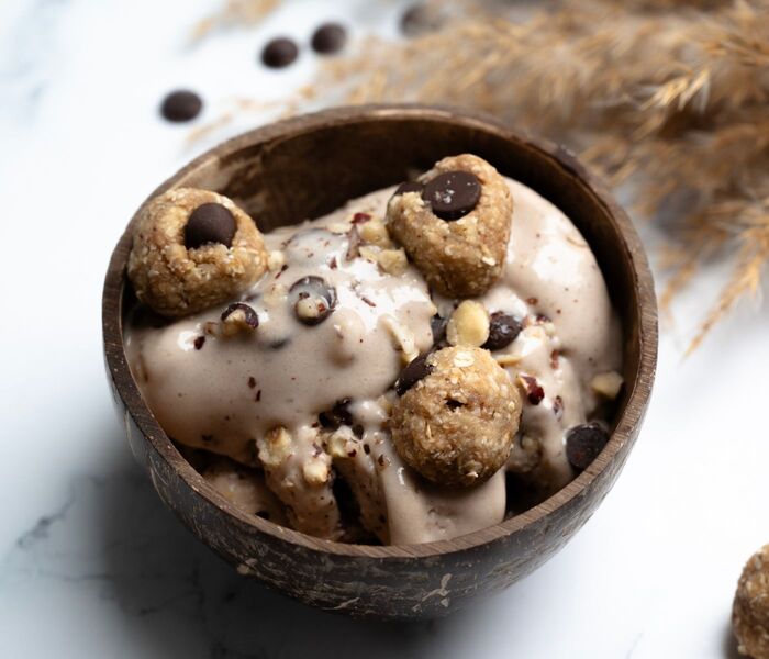 @bamchocolate.com FIT banana ice cream ? Summer is the time for refreshing and delicious desserts, so today we're making chocolate-hazelnut nicecream with cookie dough balls - a healthy version of ice cream made from frozen bananas, without dairy or extra sugar. ?? This recipe combines the natural sweetness of bananas, the rich flavour of BAM chocolate-hazelnut spread and the crunch of sugar-free chocolate drops and crushed hazelnuts. Cookie dough balls are packed with almond and oat flour and BAM chocolate drops. Easy to prepare and unforgettable results! ? Make summer even sweeter with BAM products. Use promo code TIKTOK and get 15% discount. ? INGREDIENTS: 4 frozen bananas BAM chocolate-hazelnut spread Milk if needed BAM chocolate drops without added sugar Crumbled hazelnuts 40 g almond flour 60 g oat flour PROCESS: In a blender, blend the frozen bananas, 2 tbsp BAM chocolate-hazelnut spread and a little milk until smooth. Add a handful of BAM chocolate drops without added sugar and a few crushed hazelnuts, then mix well. Transfer the mixture to a freezer container and sprinkle a few more chocolate drops and chopped hazelnuts on top. Place the Nicecream in the freezer for at least 1 hour. In the meantime, make the cookie dough balls: mix together the almond flour, oat flour, a few BAM chocolate drops, 1 tbsp BAM chocolate-hazelnut spread and a little milk. Shape into balls of any size and place in a cold place. When the nicecream is ready, serve it with the cookie dough balls. #nicecream #nicecreamrecipe #bananaicecream #fitdessert #healthyrecipe #chocolate #cookiedough#bam #bamchocolate ♬ original sound - BAM (Become A Master)
