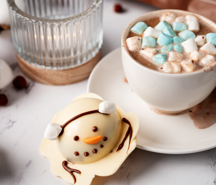 ABAM fehér csokoládé fényes külsőt kölcsönöz a hóembernek; a BAM mini fehércukros mousse játékos jelleget kölcsönöz; a BAM mogyorós forró csokoládé a desszert fő összetevője, és végül, de nem utolsósorban a BAM tejcsokoládé kiemeli a részleteket.