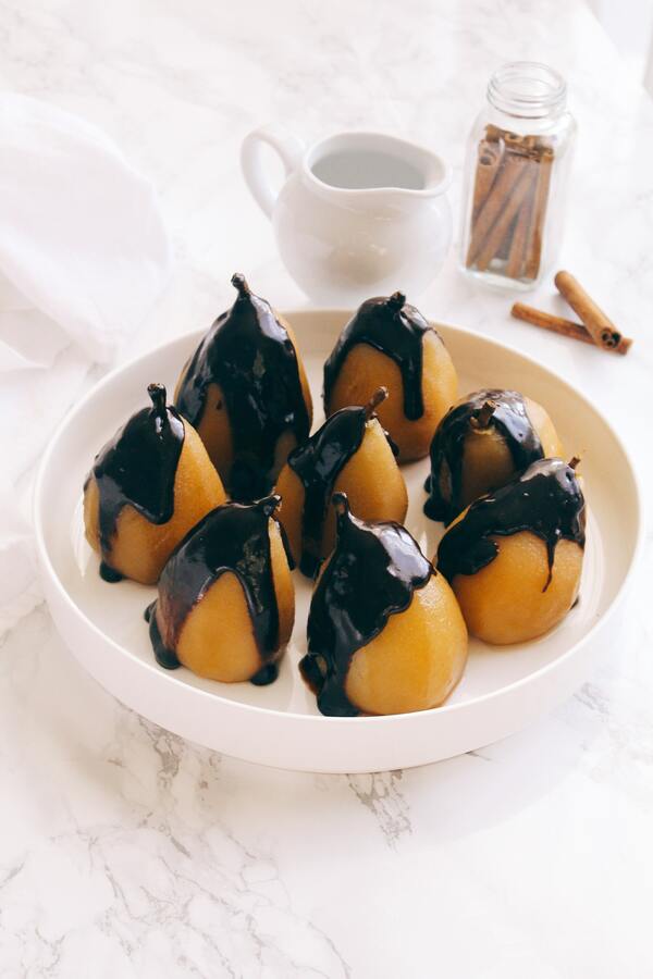 Főzzük a körtét körülbelül 10-15 percig. Ha megfőtt, öntsük az olvasztott csokoládét a körtékre, hűtsük ki, és tejszínhabbal vagy fagylalttal tálaljuk.
