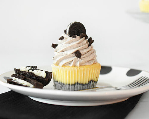 Keverjük össze az Oreo port az olvasztott vajjal. Osszuk szét a keveréket a sütőformákban, és egy teáskanállal nyomkodjuk az aljukba.