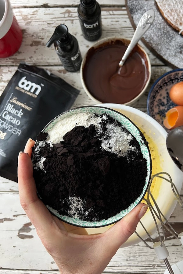 A BAM fekete kakaópor ízében és állagában hasonlít a BAM kakaóporhoz. 100% afrikai kakaóbabból készül, amely a por intenzív fekete színét adja. Alkalmas piskótatészta elkészítéséhez, és biztosan kiemelkedővé teszi azt. A BAM fekete kakaópor intenzív természetes fekete színe nem befolyásolja az ízét, és jól működik más alapvető desszert-összetevőkkel kombinálva. Használható a legsötétebb csokoládétorták vagy brownie-k készítéséhez, de akár a vajkrém ételszínezőjeként is, amely bármilyen süteményt teljesen feketévé varázsol. A BAM fekete kakaópor tökéletes a fekete burgerzsemle készítéséhez is. A termék GLUTÉNMENTES.