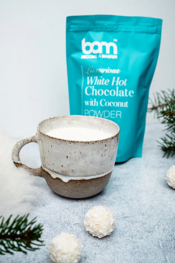 A BAM kókuszos fehér forró csokoládé (220 g) krémes, telt ízű és gazdag forró csokoládét teremt a hideg őszi vagy téli napok felmelegítésére. A kókuszos fehér forró csokoládé trópusi ízzel kényezteti az ízlelőbimbókat, amelyet ropogós ostyával vagy felvert édes tejszínhabbal lehet tovább fokozni. A kókuszos fehér forró csokoládé praktikus tasakban kerül forgalomba, és hét forró csokoládéital elkészítését teszi lehetővé. A csomagban egy mérőkanál is található, amely megkönnyíti a forró csokoládé adagolását és elkészítését. BAM mini mályvacukorral együtt tálalható.